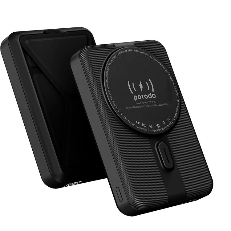 بورودو بنك طاقة ماجسيف رقمي بسعة 10000 مللي أمبير مع حامل بقوة 20 واط PD، نوع-C، USB-A، شحن لاسلكي 15 واط، تثبيت مغناطيسي قوي - أسود