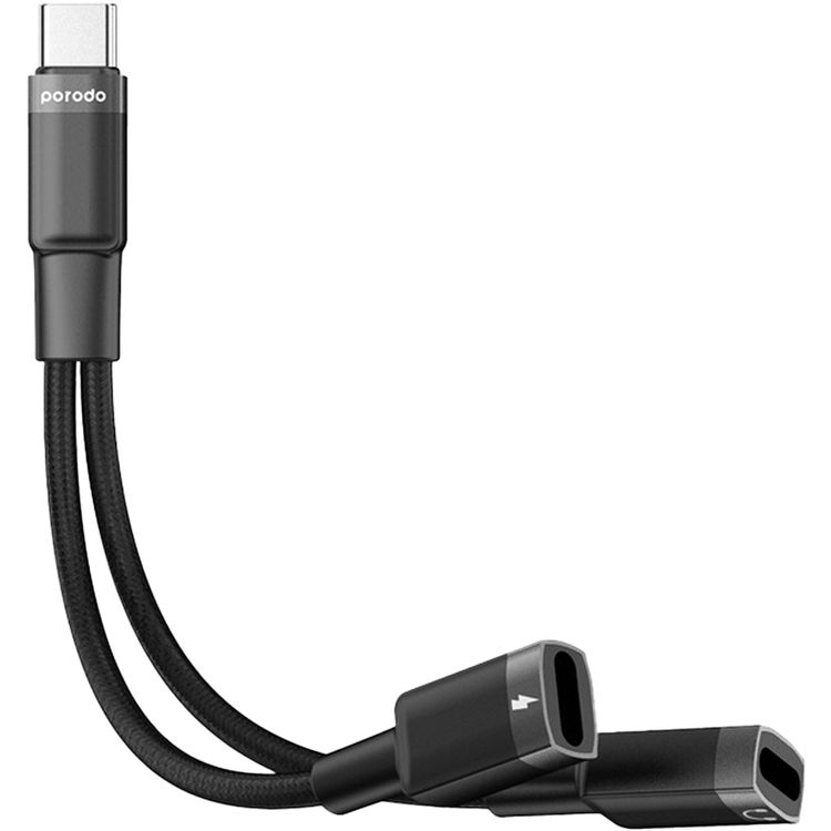محول بورودو 2 في 1 من النوع C إلى 2*مقبس سماعة رأس وشحن، شحن مثالي، توصيل وتشغيل - أسود
