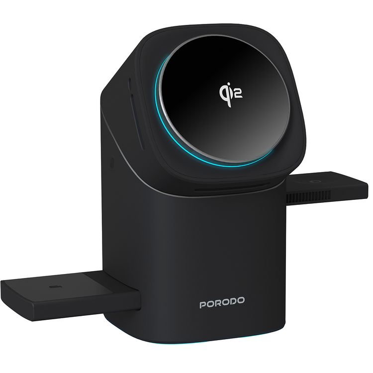 شاحن لاسلكي 3 في 1 من بورودو، دوران تلقائي، واجهة شحن من النوع C، وحدات انزلاق تلقائي
