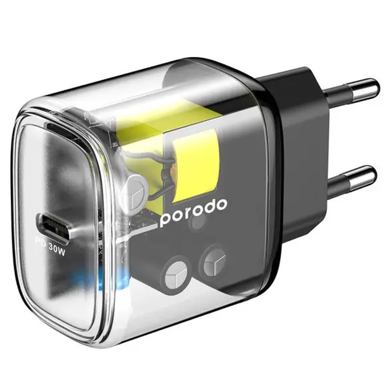 بورودو شاحن سريع شفاف 30 وات USB-C توصيل الطاقة في المملكة المتحدة - أسود