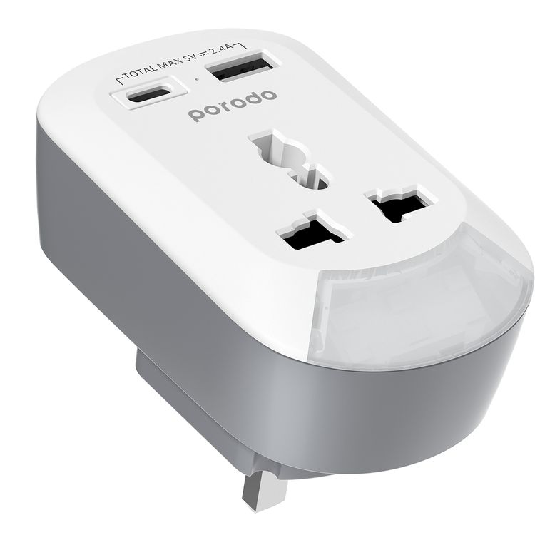 مقبس Porodo 3in1 متعدد الأنواع مع AC USB-A / Type-C في المملكة المتحدة - أبيض