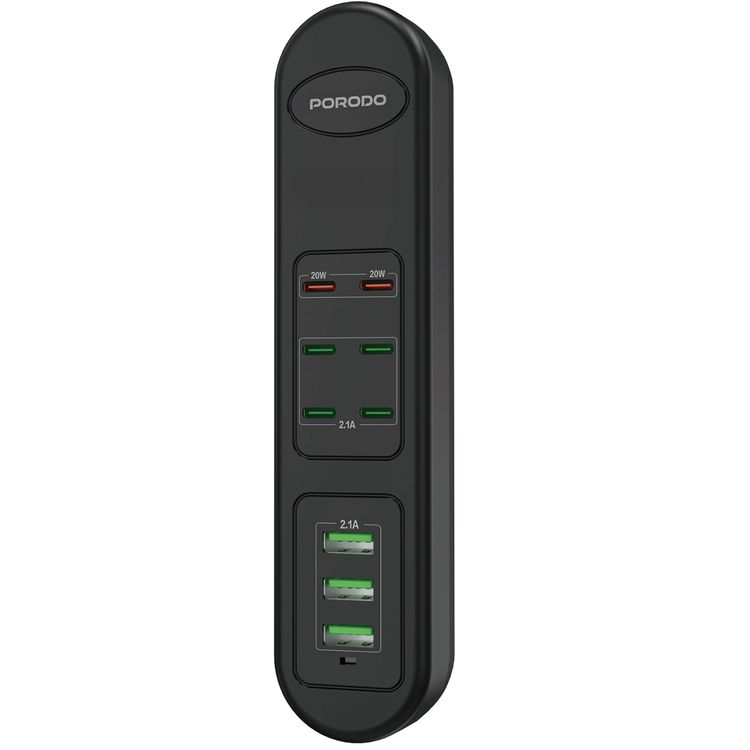 بورودو موزع شحن USB متعدد المنافذ بقوة 50 واط مع توصيل طاقة بقوة 20 واط، شحن متزامن، طول كابل 2 متر، دعم الشحن السريع، حماية مدمجة - أسود