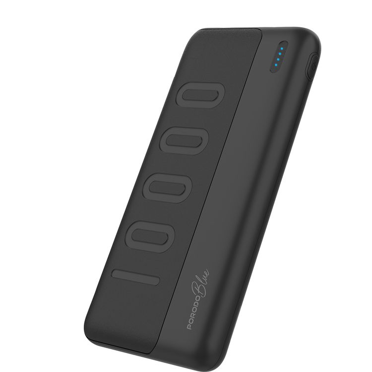 باوردو بلو باور بانك رفيع بسعة 10000 مللي أمبير في الساعة مع مخرج USB-A مزدوج، تصميم خفيف الوزن وصغير الحجم، مدخل من النوع C، مؤشر LED - أسود