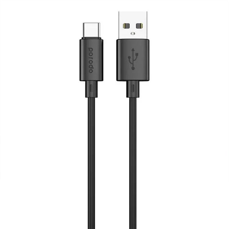 كابل شحن USB-A إلى Type-C من Porodo Blue، شحن سريع ونقل بيانات، شحن سريع 3 أمبير، مادة مرنة، توافق عالمي - أسود