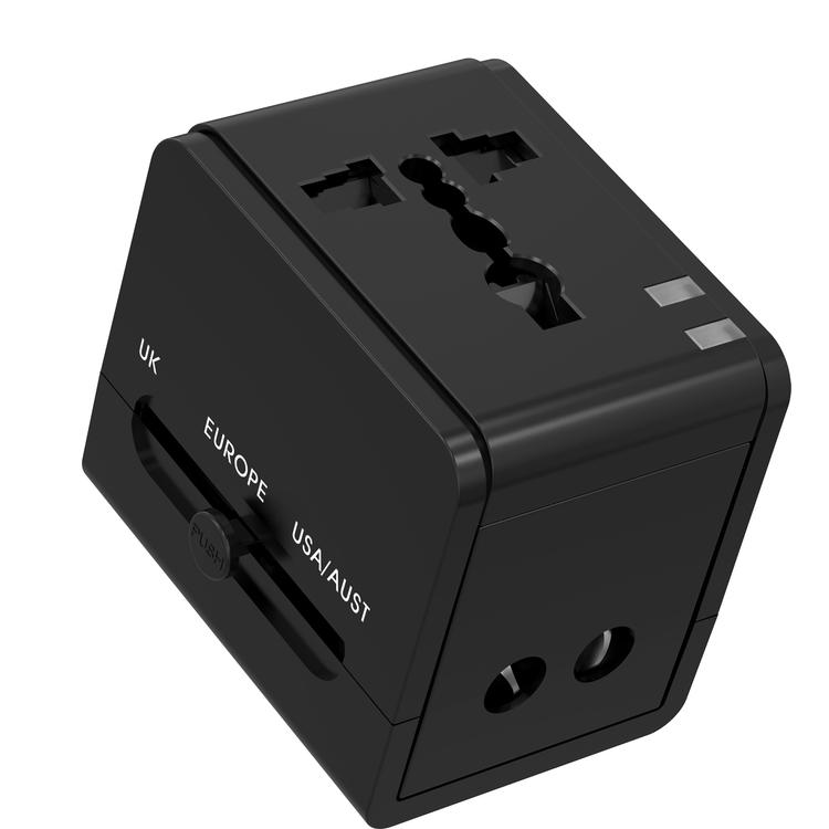 مهايئ سفر عالمي بورودو بلو ثنائي USB-A، مزود بميزات أمان مدمجة، طاقة إخراج عالية، توافق واسع - أسود