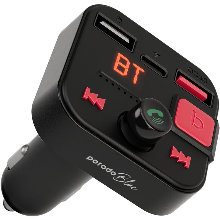 جهاز إرسال FM لاسلكي من بورودو بلو مع منفذي QC3.0 وType-C، وميكروفون عالي الجودة، وبلوتوث الإصدار 5.1، وقوة إجمالية 30 وات، وفتحة بطاقة Micro SD سعة 64 جيجابايت، ومكالمات بدون استخدام اليدين، وبث الموسيقى، وسهل السفر - أسود