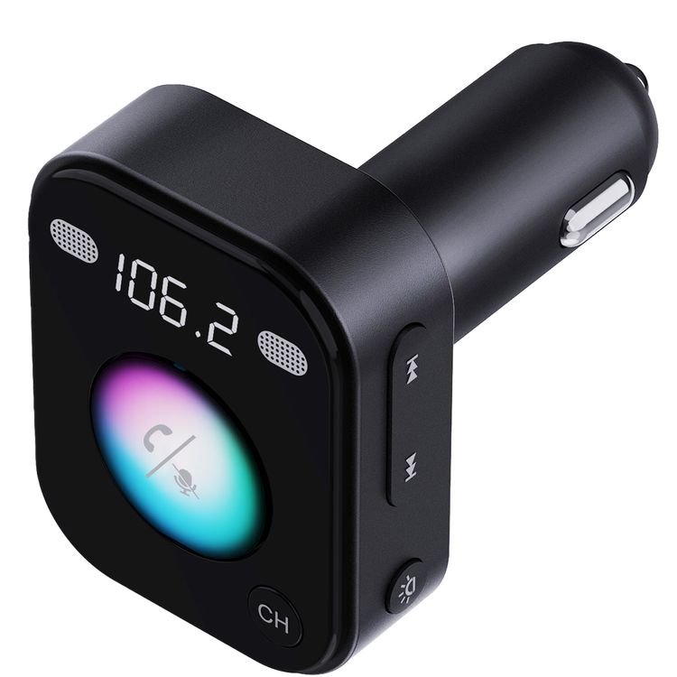 جهاز إرسال FM بتقنية البلوتوث من Porodo مع الأوامر الصوتية وإضاءة مزاجية ومكالمات بدون استخدام اليدين وبلوتوث V5.4 وPD 36W - أسود