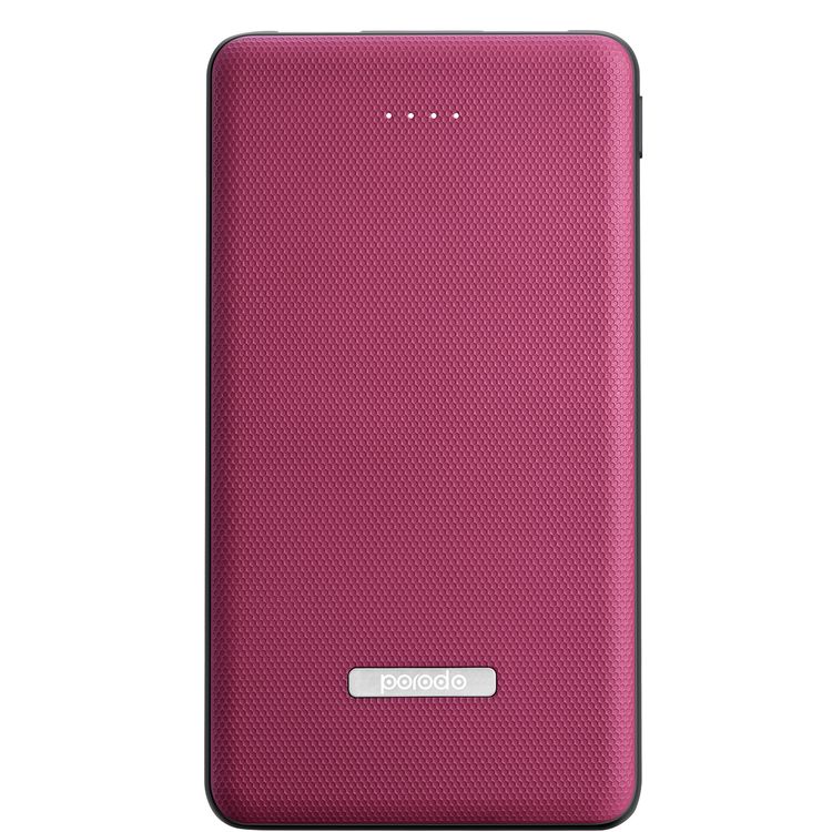 باور بانك ثنائي USB جامع من بورودو بسعة 10000 مللي أمبير في الساعة مع سطح مطاطي، تصميم نحيف مدمج، محمول، مؤشر LED، متوافق مع الهواتف الذكية - أحمر