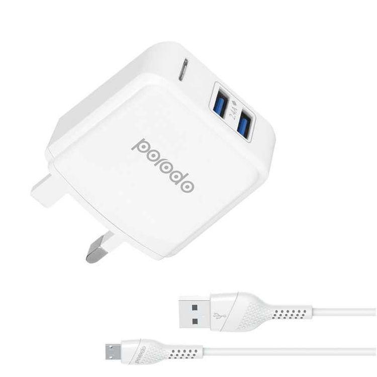 بورودو شاحن حائط USB مزدوج 2.4 أمبير UK - أبيض