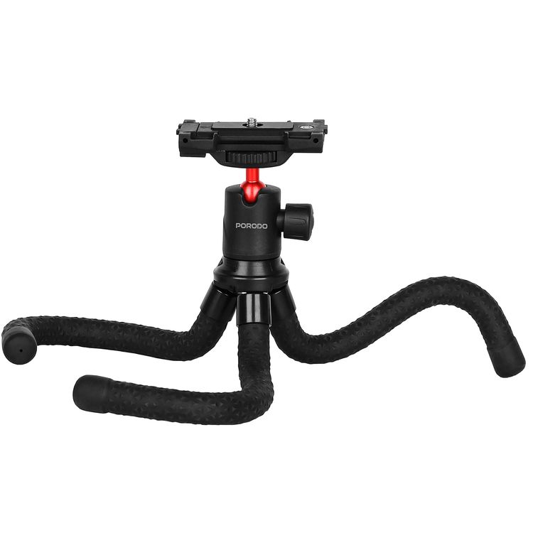 حامل ثلاثي القوائم مرن قابل للطي والتمديد من بورودو مع حامل للهاتف، مصنوع من مادة ABS + المطاط، مقبض غير قابل للانزلاق، طول مطوي 330 مم، خفيف الوزن وقابل للحمل، ارتفاع ممتد 39 سم - أسود