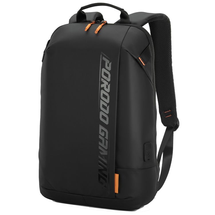 حقيبة ظهر للكمبيوتر المحمول من البولي يوريثان مقاومة للماء للألعاب من Porodo مع منفذ USB-C - أسود