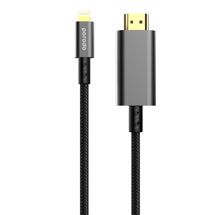 كابل Porodo HDMI مع موصل Lightning إلى HDMI وبث فيديو فائق الدقة بقيمة $K - أسود - 1.8M