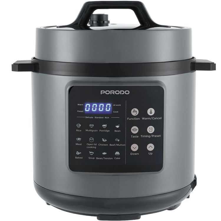 Porodo قدر ضغط متعدد الوظائف بقوة 1300 واط وسعة 6 لترات بشاشة LED، وجبات بوعاء واحد، 12 وظيفة مسبقة الضبط، زر تحرير الضغط، تحكم بلمسة واحدة، طهي تلقائي، برامج طهي قابلة للتخصيص - أسود