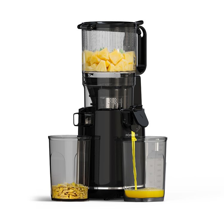 عصارة ببطء من بورودو لايفستايل بنظام العصر البارد مع سعة قمع 1.8 لتر وسعة كوب اللب 800 مل، استخلاص عصير فعال، مستوى ضجيج هادئ 72 ديسيبل، صيانة سهلة، فتحة تغذية واسعة 5.3 بوصة، وظيفة عكسية، سعة كوب العصر 1 لتر - اللون الأسود.