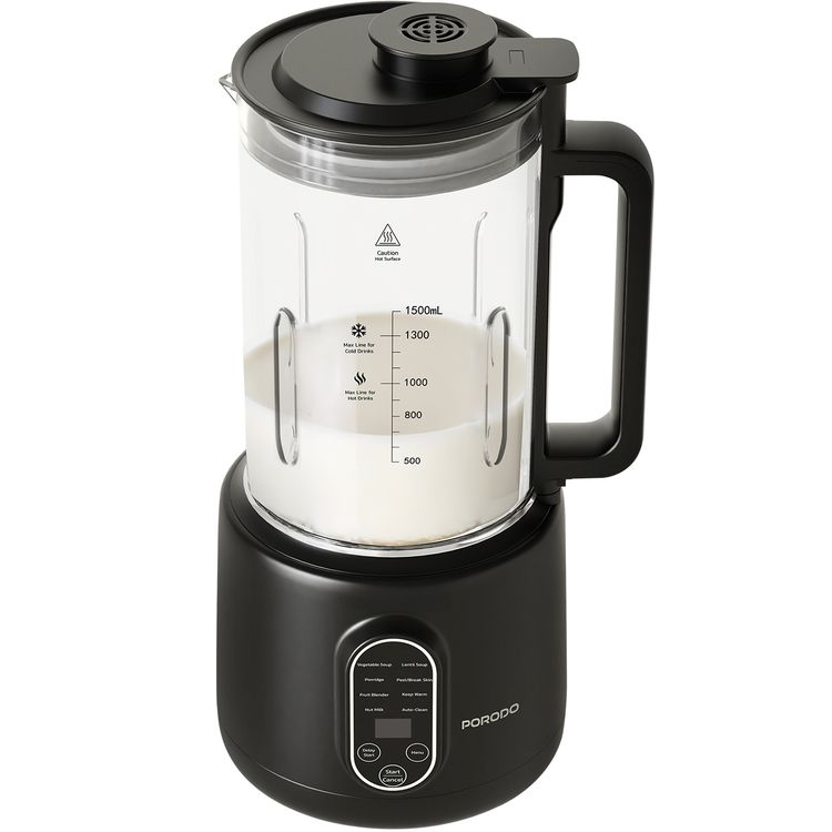 جهاز صنع حليب المكسرات من بورودو لايف ستايل مع جرة حرارية متقدمة، سعة 1.5 لتر، شفرات متعددة الزوايا، قوة خلط 400 واط، تنظيف تلقائي، ووضع خلط مزدوج - أسود