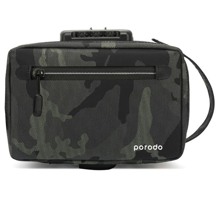 حقيبة تخزين من الجلد والنايلون من بورودو لايف ستايل مضادة للسرقة مقاس 8.2 بوصة مع حامل محرك أقراص فلاش USB، مقاومة للرذاذ IPX3، متوافقة مع شحن USB-A - أخضر غامق