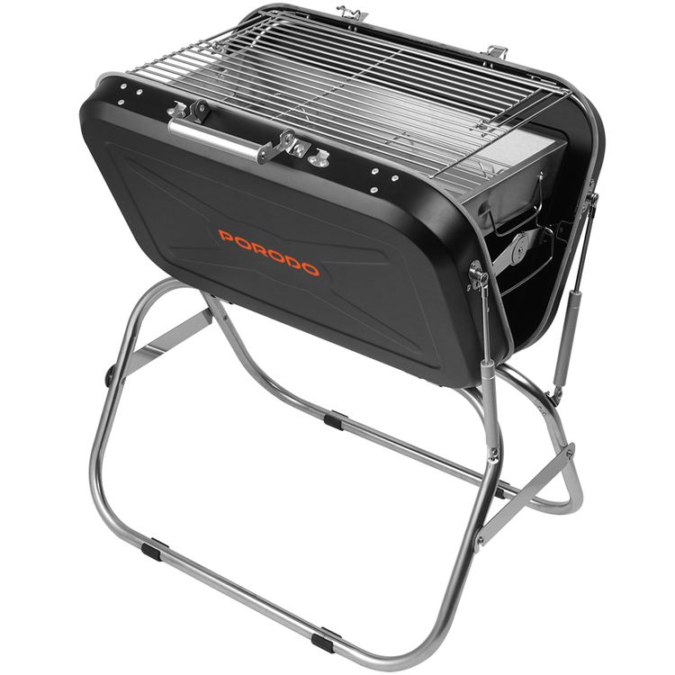 شواية للشواء المحمولة قابلة للطي من بورودو لايف ستايل مع شبكة طهي من الفولاذ، مساحة شواء 17 بوصة، للرحلات التخييم، حفلات الفناء الخلفي والنزهات الشاطئية، سهلة التنظيف والتركيب السريع - باللون الأسود.
