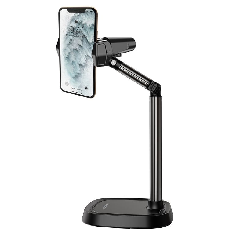 حامل هاتف مكتبي متعدد الزوايا من Porodo مع زاوية عرض مرنة، تثبيت آمن، متوافق مع الأجهزة التي يصل حجمها إلى 6.7 بوصة - أسود