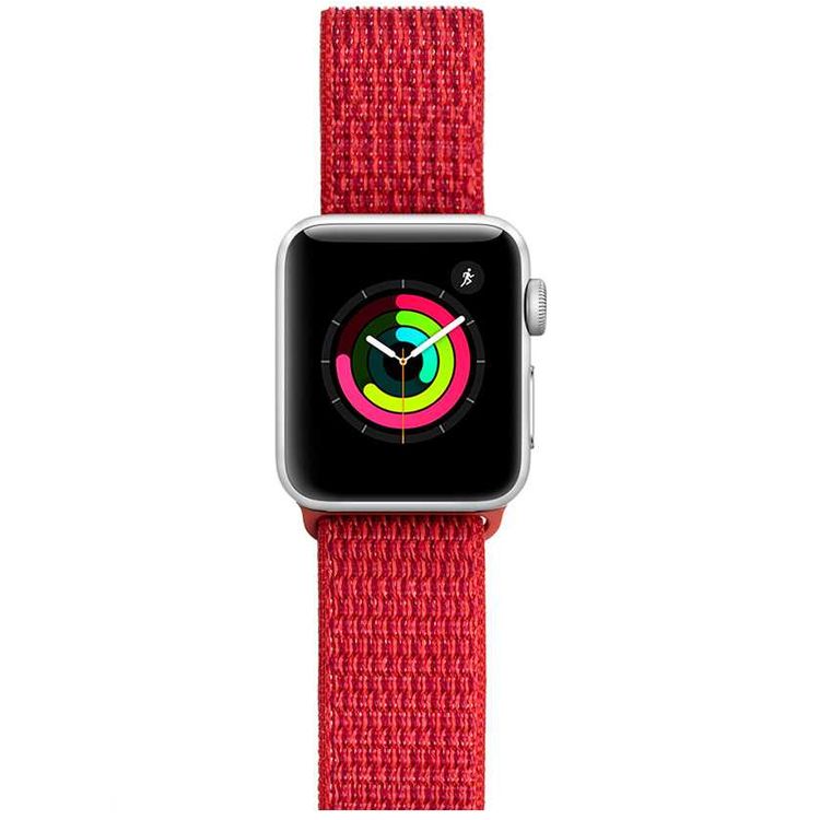 سوار ساعة بورودو من النايلون متوافق مع ساعة ابل 44 ملم/42 - احمر