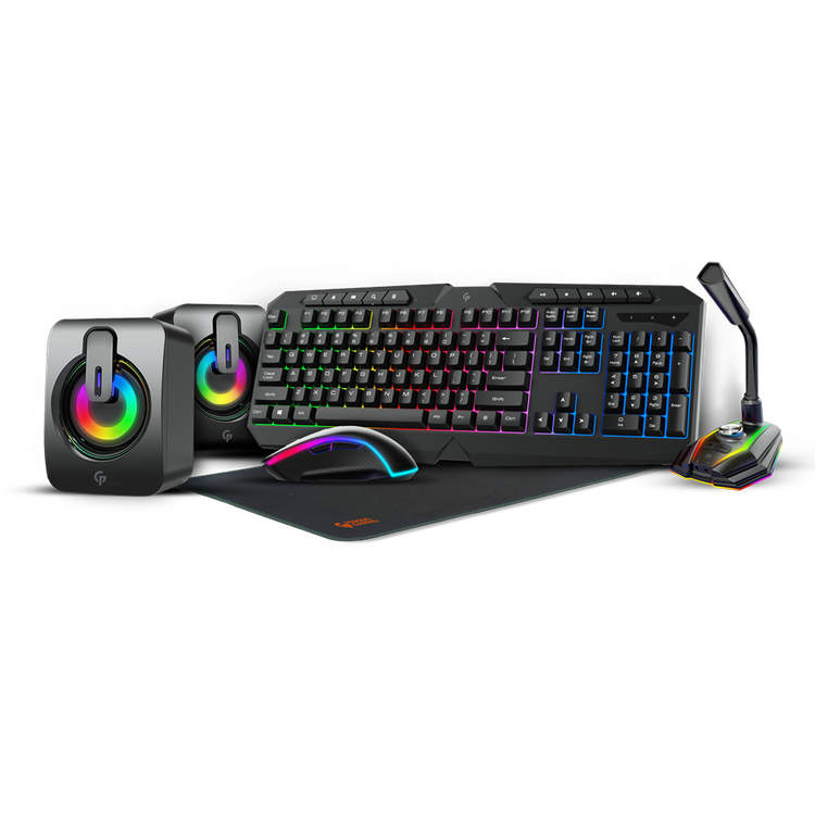 بورودو PDX215-BK مجموعة ألعاب ألتيميت 5 في 1 ، التخطيط: 104 مفتاح ، الولايات المتحدة + العربية ، ميكروفون متعدد الاتجاهات ، فأرة إضاءة RGB - أسود