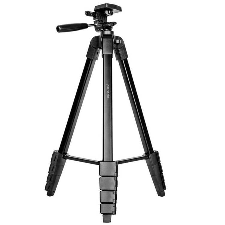 حامل ثلاثي القوائم احترافي من بورودو مع حامل للهاتف، توافق واسع، تصميم تلسكوبي، مقبض قلاب رأسي، برغي تثبيت 1/4 بوصة، سعة تحميل تصل إلى 2 كجم، طول 171 سم - أسود
