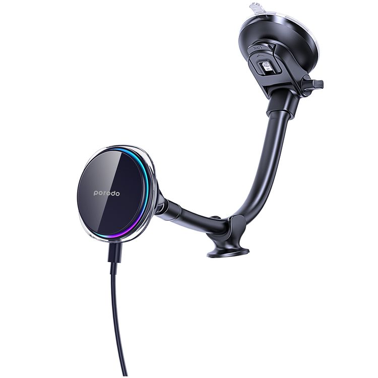 حامل شحن ماج سيف من بورودو سيميكونداكتور كولينج، شحن لاسلكي بقوة 15 وات، إضاءة ثلاثية الألوان، مغناطيس مدمج x17 N54، واجهة إدخال من النوع C، مادة ABS + PC + سبائك الألومنيوم - أسود