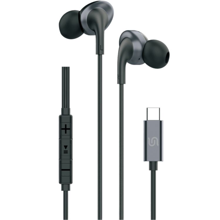 سماعات ستيريو Porodo Soundtec، مصنوعة من مادة TPE + معدن + ABS، اتصال من النوع C، طول الكابل 1.2 متر، ميكروفون عالي الوضوح، صوت واضح
