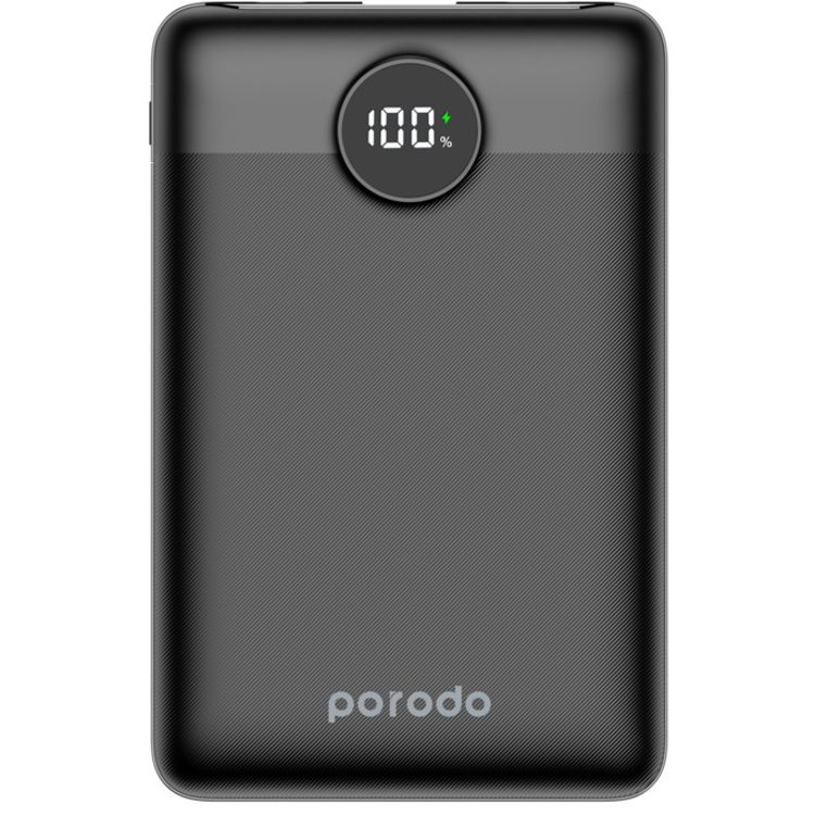 باوردو سوبر سليم 20 وات PD & QC3.0 باور بانك 10000 مللي أمبير مع 2 مخرج شحن سريع - أسود