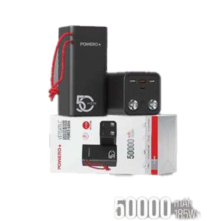 Powero+ Versatile Power Bank 50000mAh PD20W QC3.0 with LED Light Battery Level Indicator & 4 Output - Fast Charging Portable Charger Powerbank - Two Way Quick Charge - Black