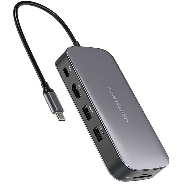 موزع USB-C بسعة 256 جيجابايت ومحرك أقراص SSD من Powerology، تخزين الكل في واحد، سرعة قراءة وكتابة 625 ميجابايت/ثانية، نقل بيانات بسرعة 5 جيجابت/ثانية، PD 100 وات، HDMI بدقة 4K - رمادي