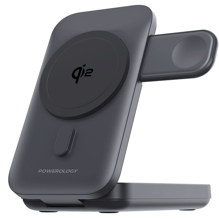 باورولوجي شاحن لاسلكي 3 في 1 ماج سيف بقوة 15 واط، بنك طاقة ببطارية ليثيوم بوليمر سعة 10000 مللي أمبير، متوافق مع آي ووتش وإيربودز - أسود
