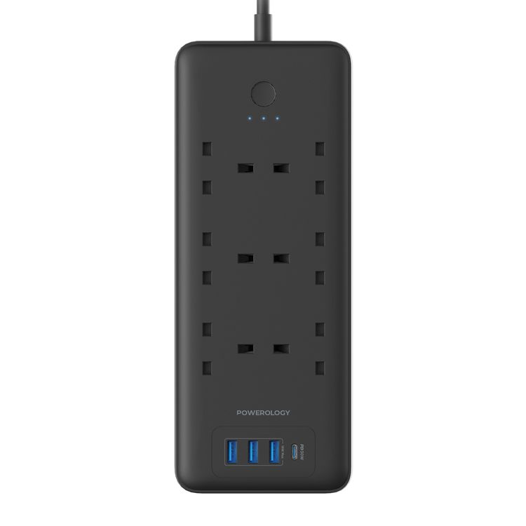 باورولوجي 6 منفذ طاقة كهربائية متعددة 48 واط مع حماية من زيادة التيار، مادة مقاومة للحريق، خرج تيار متردد 3250 واط، طول كابل 3 متر، توصيل طاقة 30 واط، كوالكوم شحن سريع 18 واط - أسود