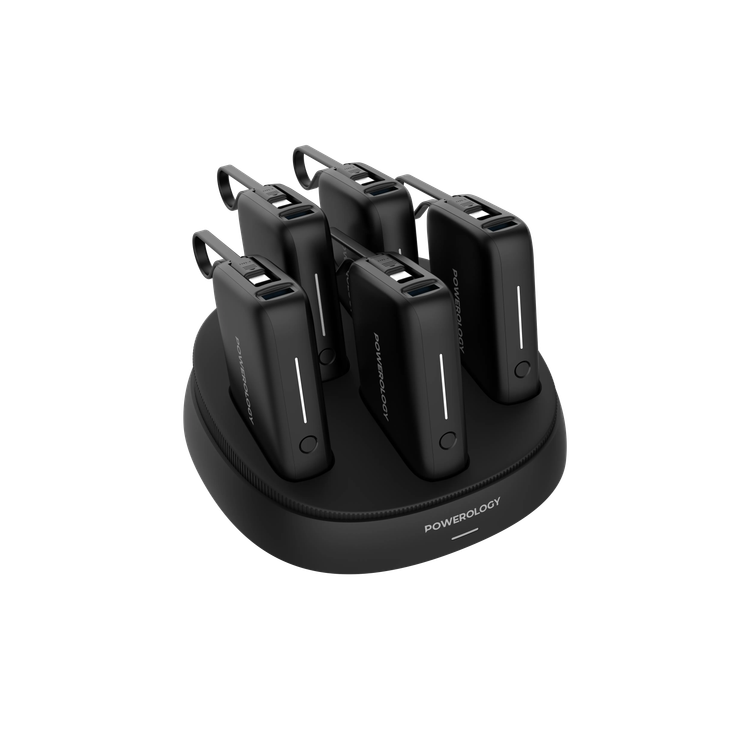 باورولوجي محطة باور بانك 5 x 10000mAh مع 50 واط PD، USB-A، USB-C، كابل مدمج من نوع C، إدخال اتصال أقصى 12V/1A، محطة شحن سريعة، بطاريات عالية الكثافة، كابل مدمج من نوع C، إجمالي إخراج 5V/3A، حماية مدمجة - أسود
