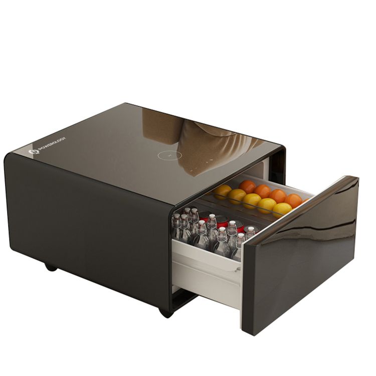 ثلاجة جانبية صغيرة من باورولوجي بسعة 65 لتر مع شاشة LED وشاحن لاسلكي، تصميم صغير الحجم، سطح زجاجي، منفذ شحن USB وType-C، تشغيل هادئ، شاشة تعمل باللمس، مقبسان للتيار المتردد - أسود