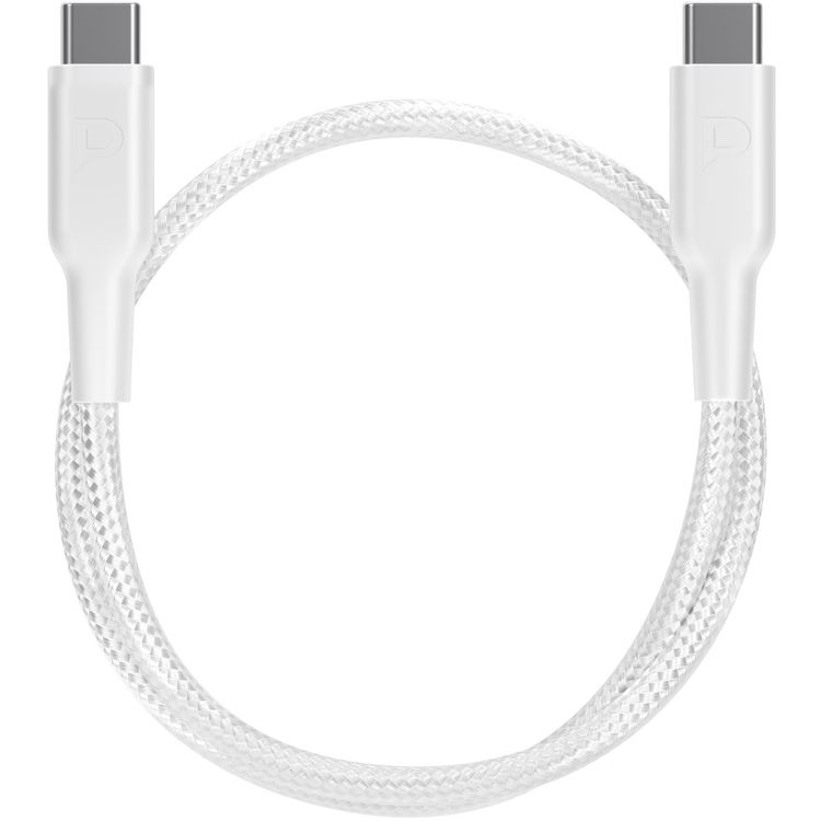 كابل باورولوجي مضفر USB-C إلى USB-C لنقل البيانات والشحن السريع بطول 30 سم/0.98 قدم، بقدرة PD 60 واط، عمر افتراضي يزيد عن 30000 انحناء - أبيض