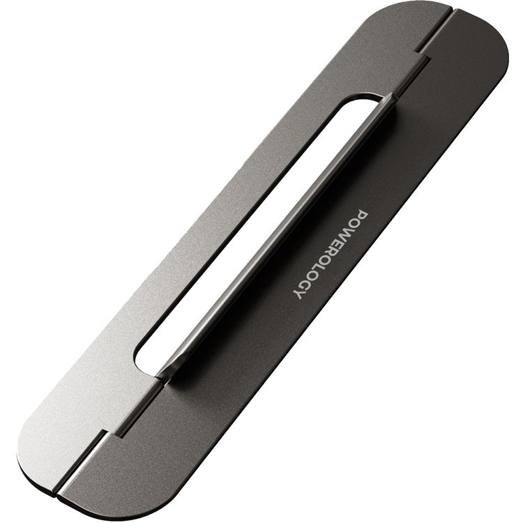 حامل كمبيوتر محمول قابل للطي والحمل من Powerology، تصميم فائق النحافة 3 مم، متوافق مع الأجهزة التي يصل حجمها إلى 15 بوصة - رمادي