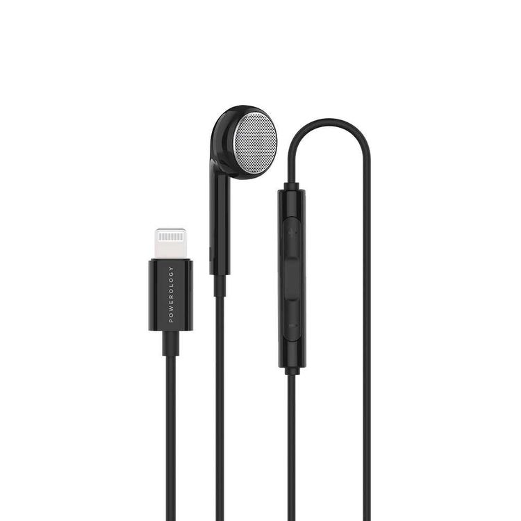 سماعة أحادية مع وصلة لايتنينغ من ماركة باورولوجي - أسود