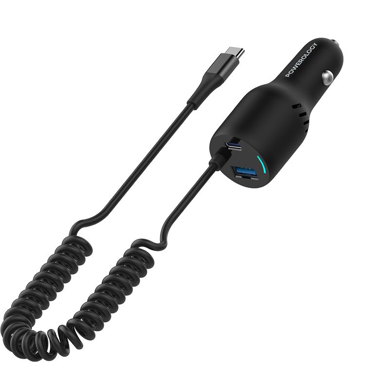 شاحن سيارة باورولوجي ثلاثي المخارج مع فتحة تهوية تبريد، توصيل طاقة 100 واط، ضمانات مدمجة، شحن سريع، مخرجات من النوع C ونوع A، متوافق مع الهواتف الذكية وأجهزة الكمبيوتر المحمولة - أسود