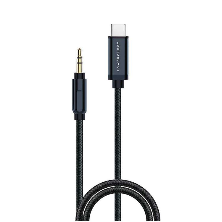 كابل باورولوجي مجدول من نوع C إلى AUX 3.5 مم بطول 1.2 متر، توافق عالمي، بث موسيقي سلس، عمر افتراضي يصل إلى 5000 انحناءة - رمادي