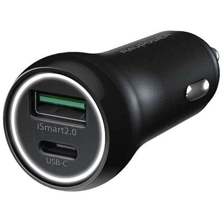راف باور شاحن سيارة يو اس بي مزدوج المنافذ 36 وات مع منفذ تايب-سي 18واط شاحن سريع 3.0 ، مؤشر ليد ، شحن سريع وآمن ، محول طاقة للسيارة بتصميم صغير ومحمول متوافق مع ايفون 12 بروماكس / 12/12 برو / سامسونج S21 / S20 الترا / نوت 20