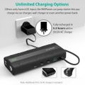 يمكن شحنه منمقبس حائط تيار متردد أو منفذ طاقة تيار مباشر للسيارة أو حزمة طاقة أخرى
