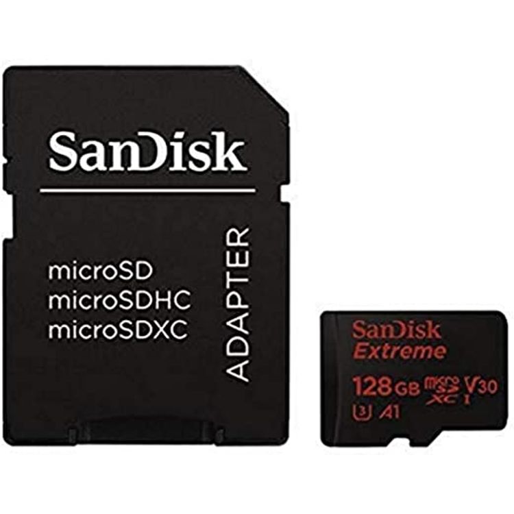 بطاقة ذاكرة سانديسك إكستريم مايكرو SDXC سعة 128 جيجابايت + محول SD بسرعة تصل إلى 100 ميجابايت/ثانية، الفئة 10، U3، V30، A1 - أسود