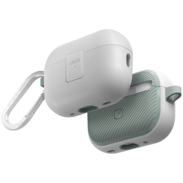 سماعات UNIQ Clyde Airpods Pro الجيل الثاني، تصميم هجين مزدوج الطبقات، حلقة تثبيت من الألومنيوم الفاخر، شحن سلكي ولاسلكي - أبيض