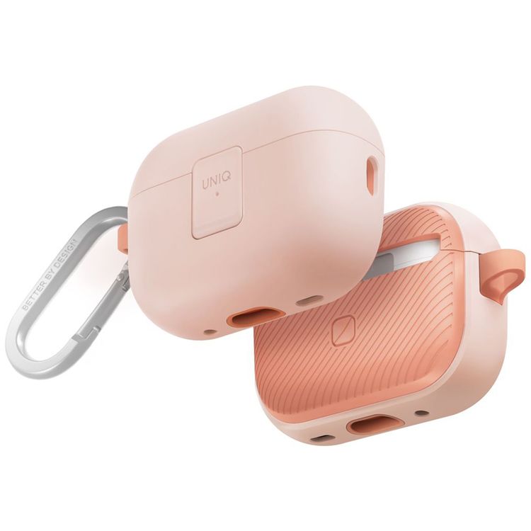 سماعات UNIQ Clyde Airpods Pro الجيل الثاني، تصميم هجين مزدوج الطبقات، حلقة تثبيت من الألومنيوم الفاخر، شحن سلكي ولاسلكي - وردي