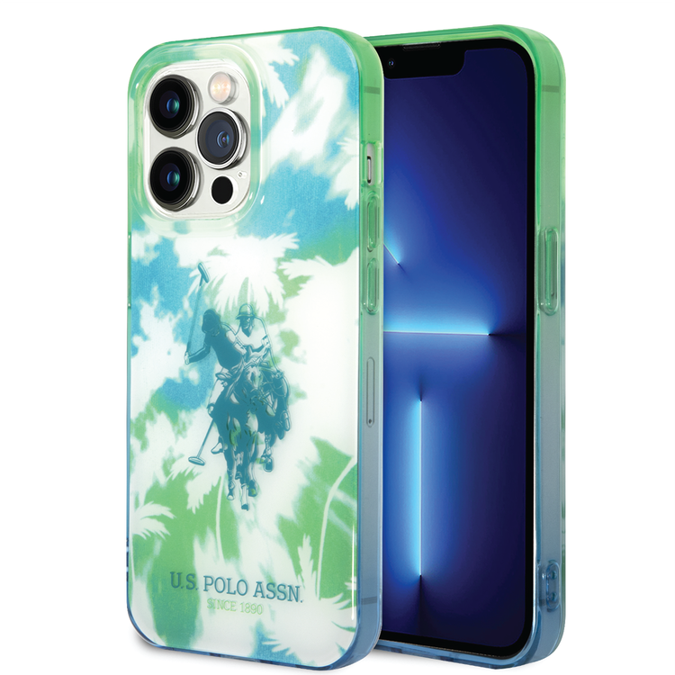 كفرUSPA PC/TPU IML مع تصميم النخيل المصبوغة وشعار الحصان لهاتف iPhone 14 Pro Max - أخضر