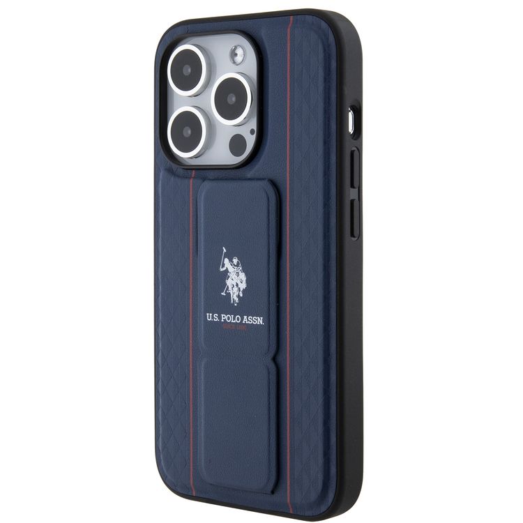 يو اس بولو أسن. حافظة بمسند من جلد البولي يوريثان بنمط محكم لسلسلة هواتف iPhone 15 - القوات البحرية - iPhone 15 Pro Max