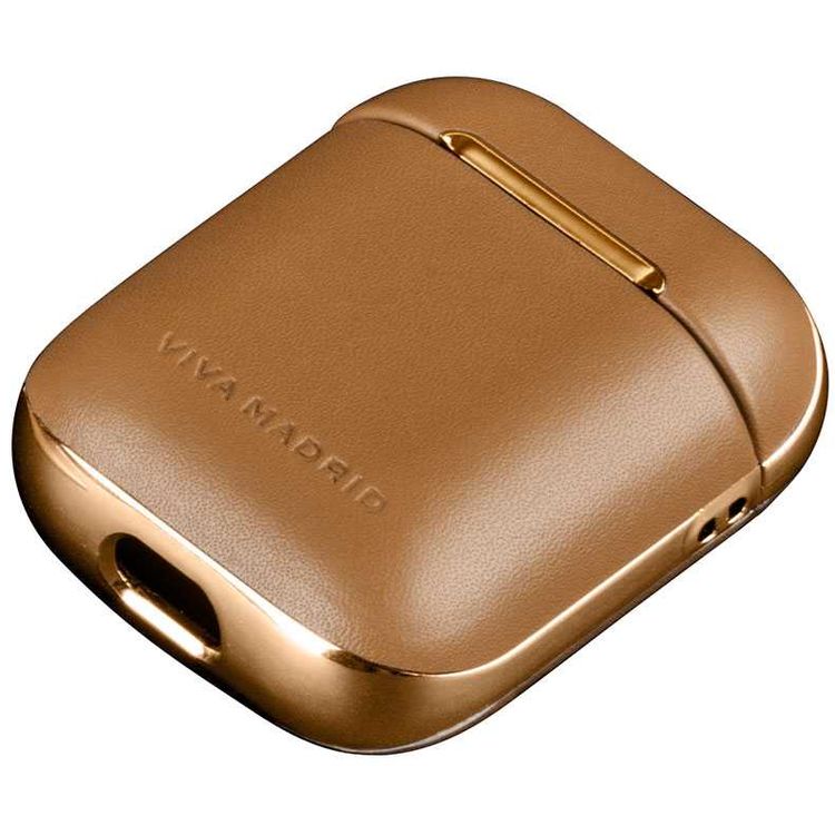 حافظة Viva Madrid Airex Allure من الجلد الأصلي متوافقة مع AirPods 1/2 - سهولة الوصول إلى منفذ الشحن - مقاومة للخدش - غطاء نحيف للحماية من الصدمات والسقوط - بني فاتح