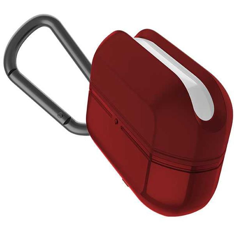 أكس-دوريا حافظة ديفينس اير متوافق مع إيربودز برو | حافظة إيربودزمقاوم للماء والغبار مع حلقة تسلق مقاومة للضياع - أحمر