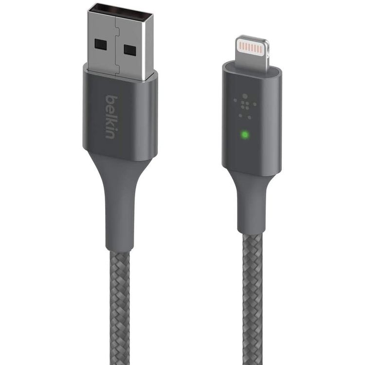 Belkin Smart LED Charging Cable USB to Lightning 4ft/1.2m (See Your Charging Status at a Glance) For iPhone, AirPods and iPad, MFi-Certified - Gray