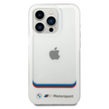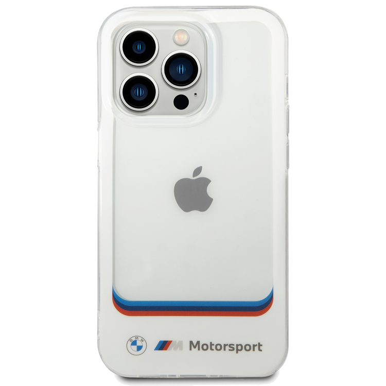 BMW Motorsport Collection PC/TPU IML Case Big Square Transparent and Printed Bottom Logo iPhone 14 Pro Compatibility - White